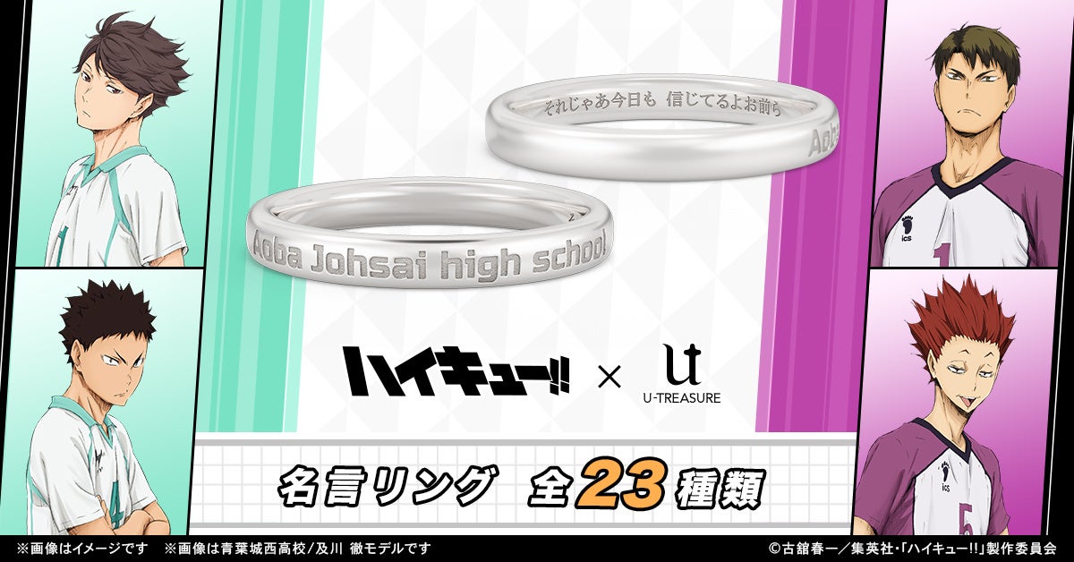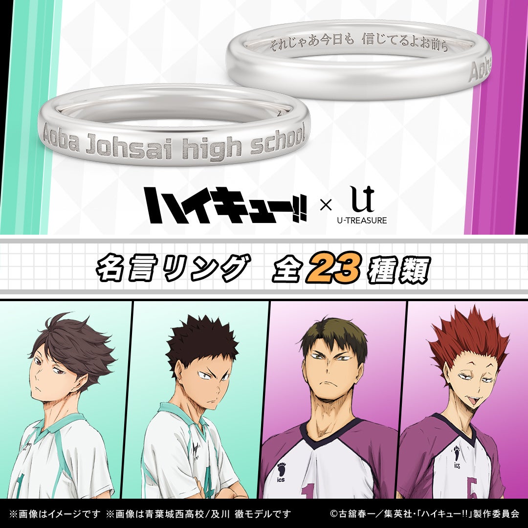 アニメ「ハイキュー‼」名言リング(指輪)がラインナップを10種類追加して再登場。及川の「それじゃあ今日も 信じてるよお前ら」など、名言を内側に刻印しました