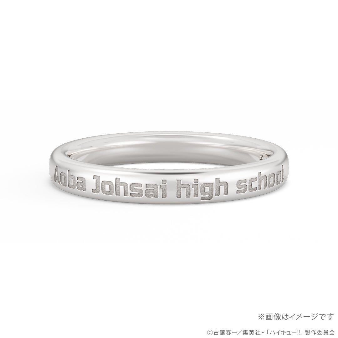 『青葉城西高校(Aoba Johsai high school)』の校名をデザインしたリングの内側に、印象的なエピソードがよみがえる各キャラクターの名言を刻みました。