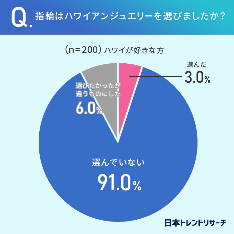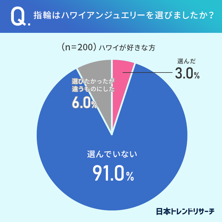 3%の方が「ハワイアンジュエリーを選んだ」6%の方が「選びたかったが違うものにした」と回答しています。