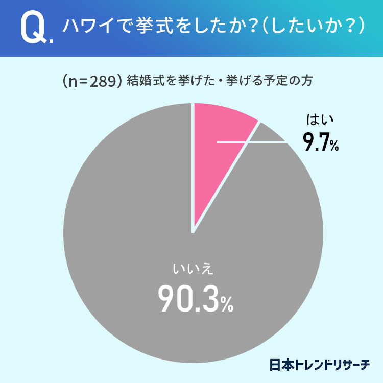 9.7%の方が「ハワイで挙式をした(したい)」と回答しています。