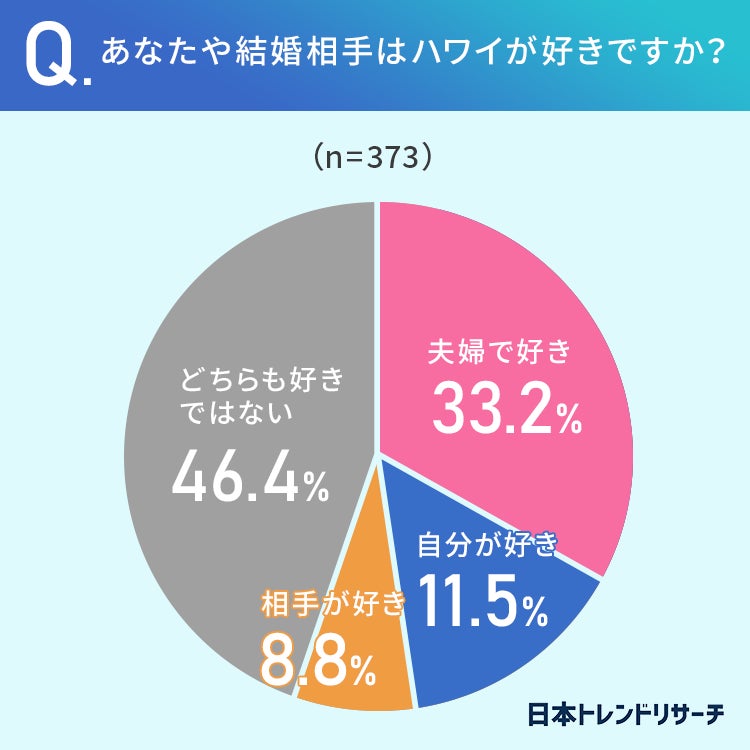 また、自身や結婚相手はハワイが好きかも聞いてみました。