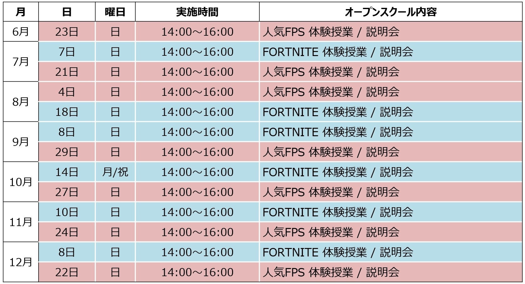 当校の魅力をさらに深く知っていただくため、6月のオープンスクールより、プロeスポーツチーム所属の講師が体験授業を開催いたします。実際に教室のゲーミングPCを使って、FPSゲームの技術を講師に教えてもらいながら参加者と一緒に楽しめます。初心者の方でもご参加いただける内容ですので、ぜひお気軽にお申し込みください。