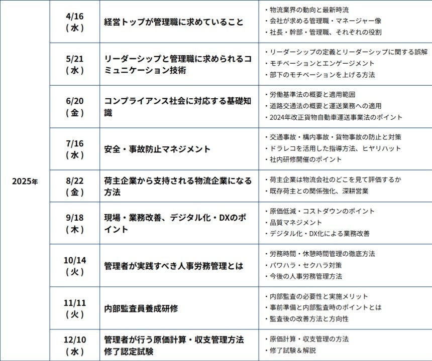 【2025年4月受講スタート】「物流会社の将来を担う人材を育成する管理職研修」の受講申込み受付を開始