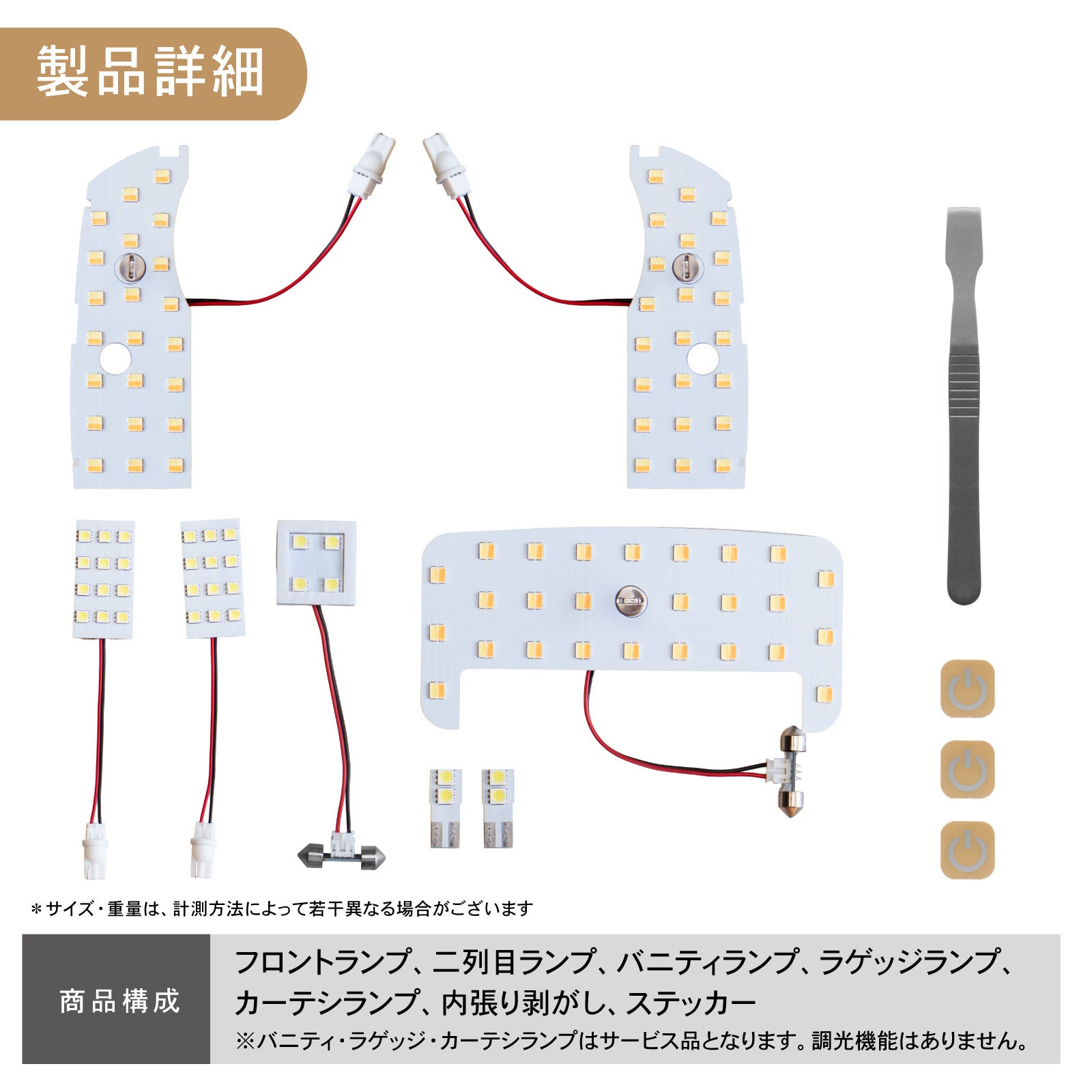 セット内容:フロントランプ、二列目ランプ、バニティランプ、ラゲッジランプ、