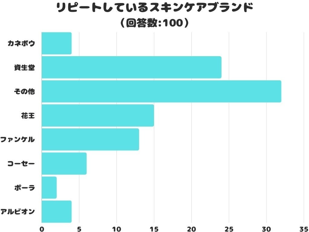 リピートしているスキンケアブランドをアンケートにて調査したところ、1位は「資生堂」でした。