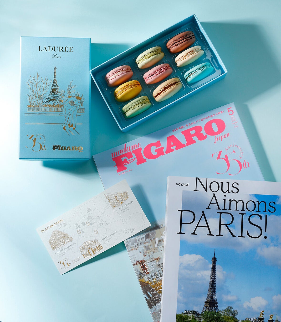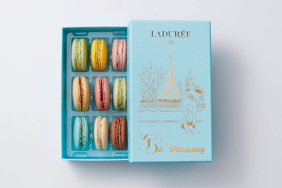 パリ発の老舗パティスリーで、マカロン発祥のメゾンであるラデュレと、同じくパリ生まれのフィガロジャポンがコラボレーション! 8月2日(土)〜9月30日(火)の期間、ラデュレ 日比谷店にて、フィガロジャポン35周年アニバーサリー アフタヌーンティーなどの特別メニューを展開するほか、全国のラデュレ ブティックとオンラインショップでは、限定のマカロンボックスとトートバッグを販売します。