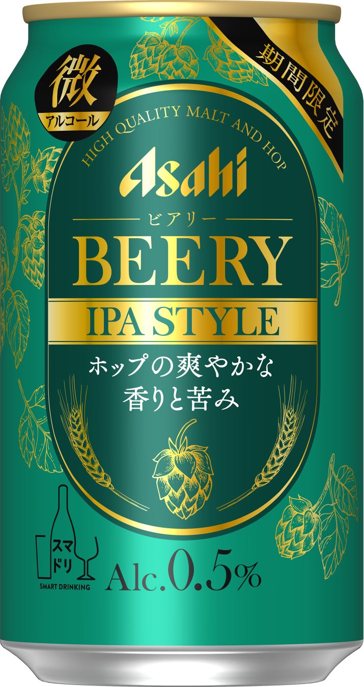 アサヒビール株式会社(本社 東京、社長 塩澤賢一)は、飲み方の多様性を提案する「スマートドリンキング」の考え方に基づき展開しているアルコール分0.5%の“微アルコール”ビールテイスト飲料「ビアリー」ブランドから、『アサヒ ビアリー IPA STYLE』を10月12日から期間限定で発売します。