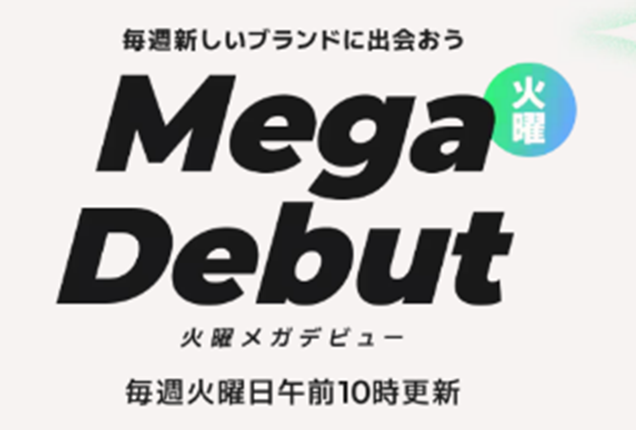・メガデビュー30%クーポン発行(100円以上購入時、最大12万円割引、対象週のデビューブランドに適用)