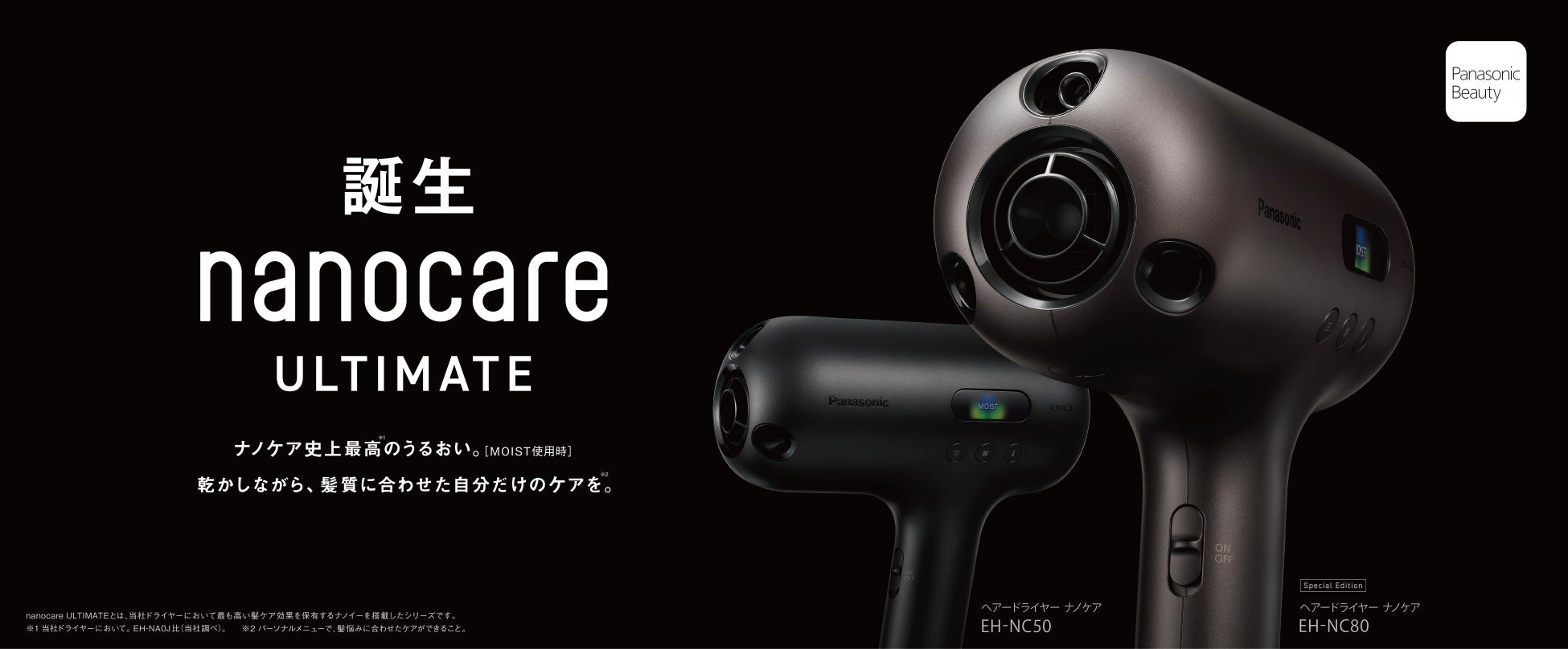 ※nanocare ULTIMATEとは、当社ドライヤーにおいて最も高い髪ケア効果を保有するナノイーを搭載したシリーズです。
