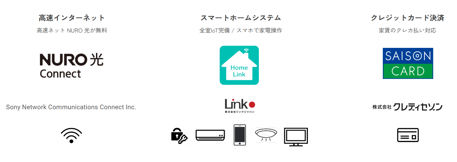 主な設備・サービス:高速インターネット(無料)、スマートホーム、宅配ボックス、