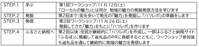 この取組みは、「その土地を、ふるさとと想う人をつくる」ことを目標に、地方創生に取り組む自治体と地元の方々が一体となって、地域の魅力を発掘・発信し、ふるさと納税を通じてその土地を応援する人の輪を広げていく「ローカル魅力発掘発信プロジェクト」の一環として実施します。