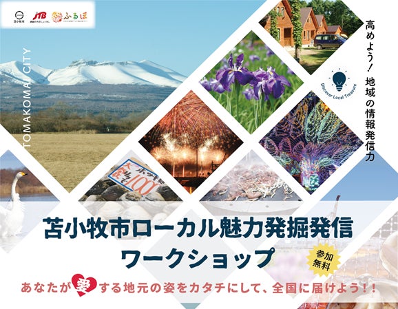 本ワークショップは苫小牧市とJTBが共催し、イーストタイムズが運営を手掛けるもので、市内在住または市内在勤・在学の方を対象とし、情報発信の専門家から地元の魅力発掘・発信方法を学びます。参加者から発掘された苫小牧市の魅力は、JTBのふるさと納税サイト「ふるぽ」で発信するとともに、ワークショップ終了後は、苫小牧市の返礼品の継続的な魅力発掘・発信につなげていきます。