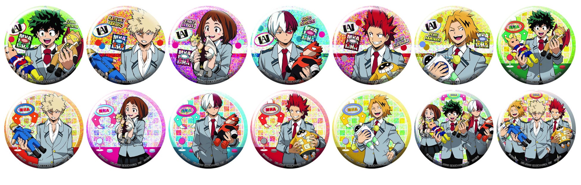 | (5)僕のヒーローアカデミア ホログラム缶バッジ~ナムコキャンペーン~(全14種) 3月17日登場予定 サイズ:約7cm ナムコ限定描き下ろしビジュアルを使用したホログラム仕様の缶バッジです。キャラクター単体と3人ずつの集合が楽しめます。 |