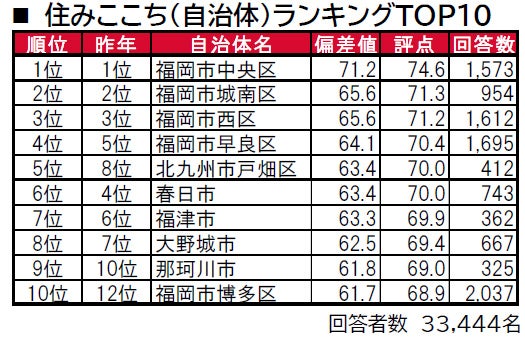 ■住みここち(自治体)トップは、5年連続で福岡市中央区