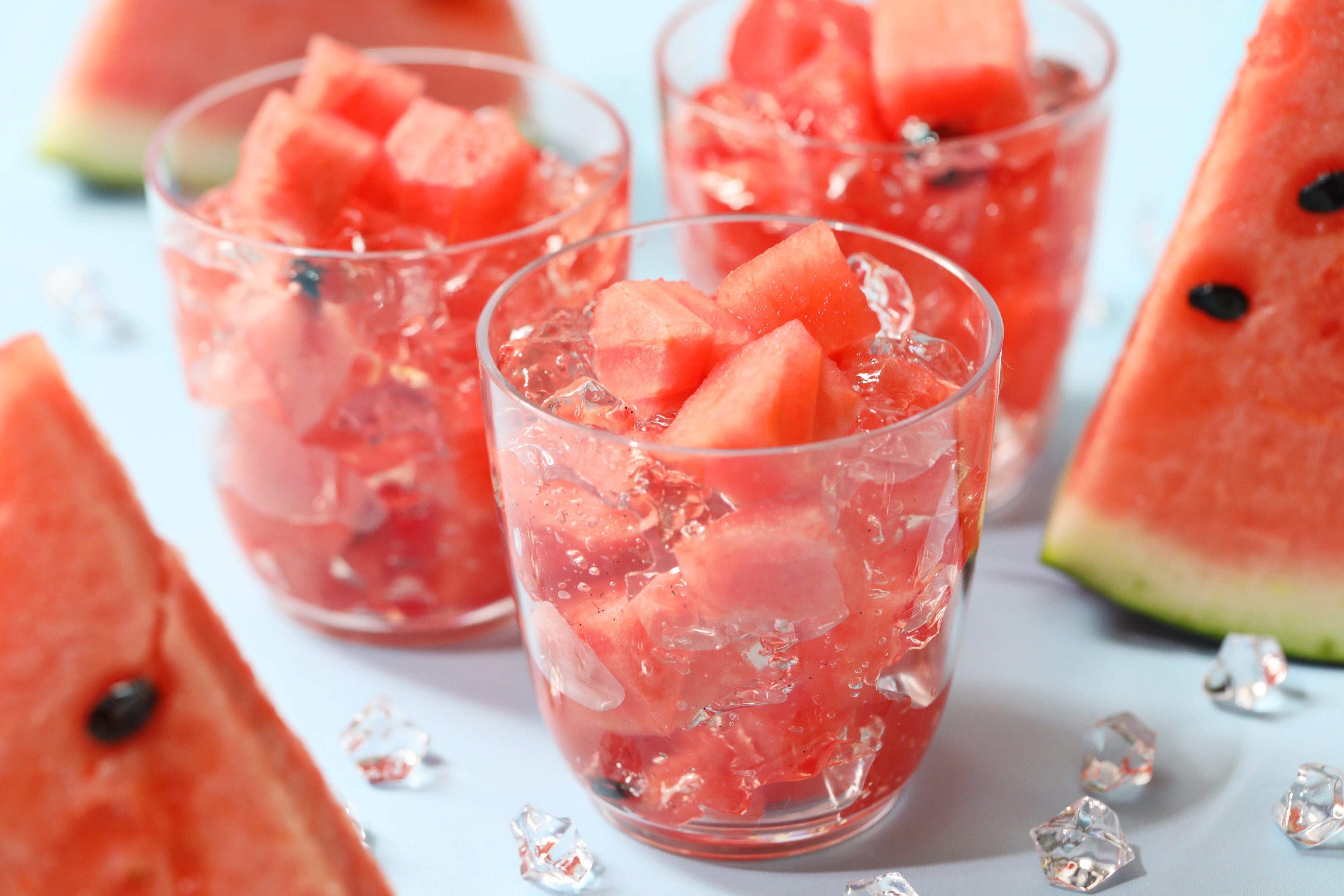 みずみずしいスイカと、なめらかでツルンと したゼリーの⾷感が夏にぴったりです。