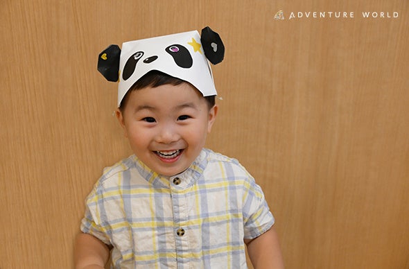 パンダになりきれるペーパーハットのワークショップです。目や鼻のシールで飾り付けて、あなただけのジャイアントパンダの帽子を作ろう!!