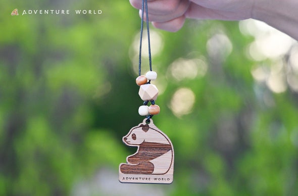 竹の集成材でできた動物のチャームに紐やビーズを通してオリジナルのキーホルダーを作る体験です。