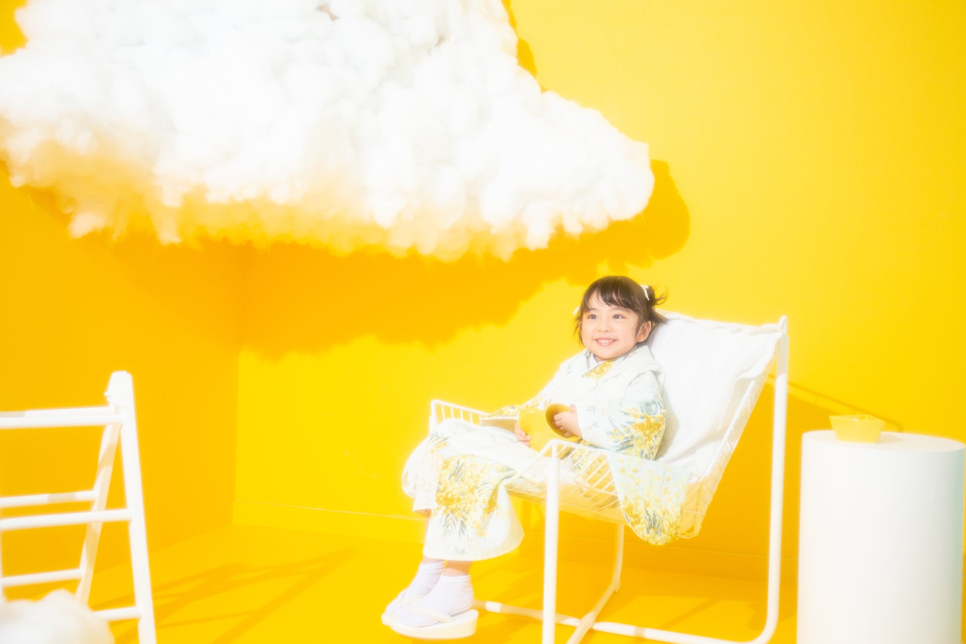 まるでわたあめのようなふわふわの雲の上で遊んでいるよう。明るく元気な雰囲気が広がる、黄色の世界観です。