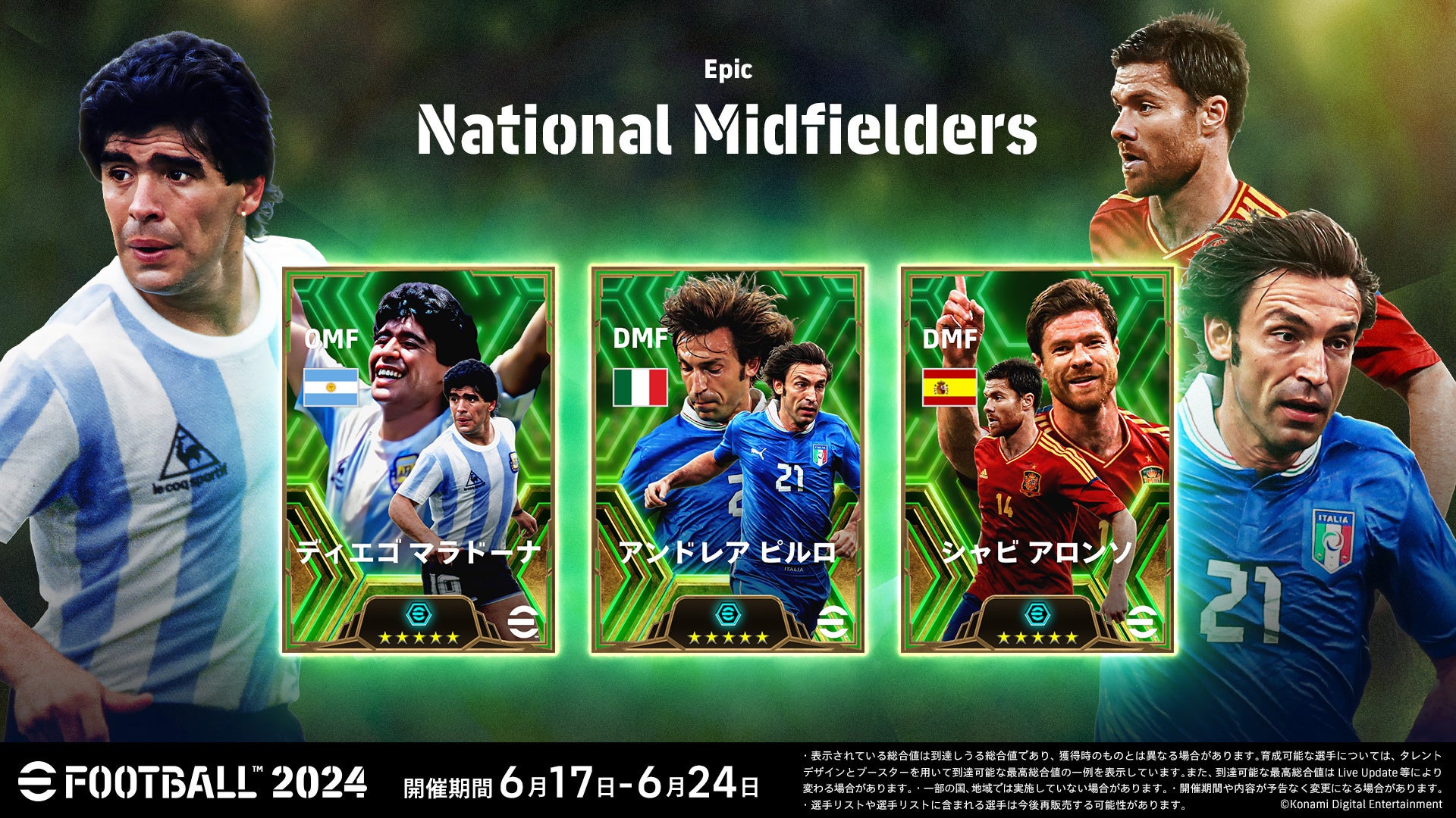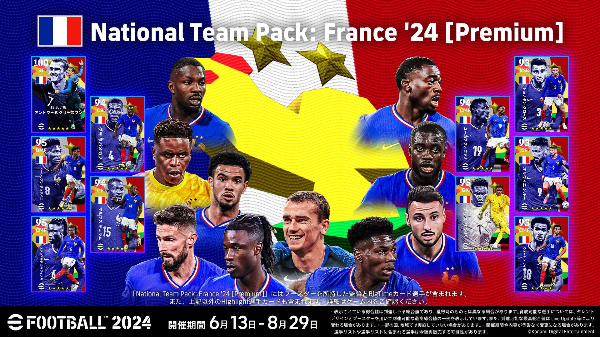 今回のアップデートと同時に、シーズン7 「King of the Continent(大陸の王者)」がスタート。4年に一度の大陸王者が決まる欧州・南米・北中米の熱気を、『eFootball™ 2024』で実施するイベントで体験できます。キャンペーンに参加することで、アルゼンチン代表とフランス代表の選手が無料で獲得できるほか、欧州・南米の強豪6か国の代表選手11人と監督がそれぞれセットになった「National Team Pack」も配信します。