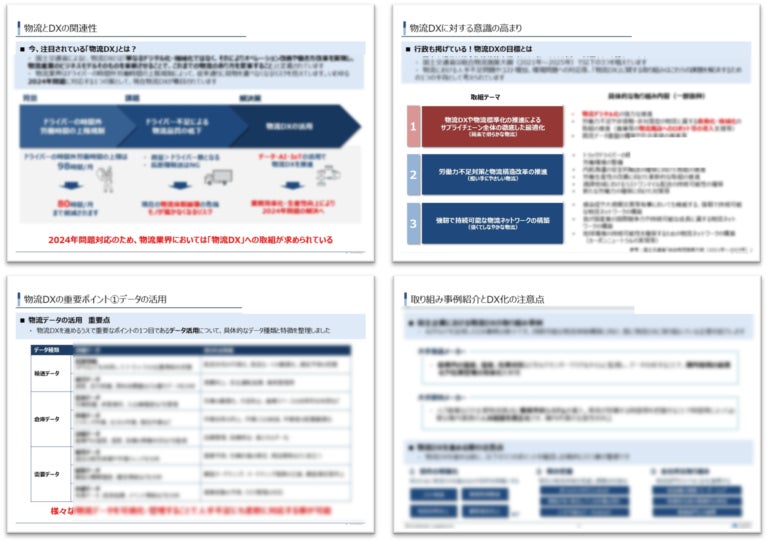 本資料では、行政が掲げる物流DXの方向性、物流DXで重要キーとなる具体的なデータ項目、荷主企業における物流DXの取り組み事例を解説します。