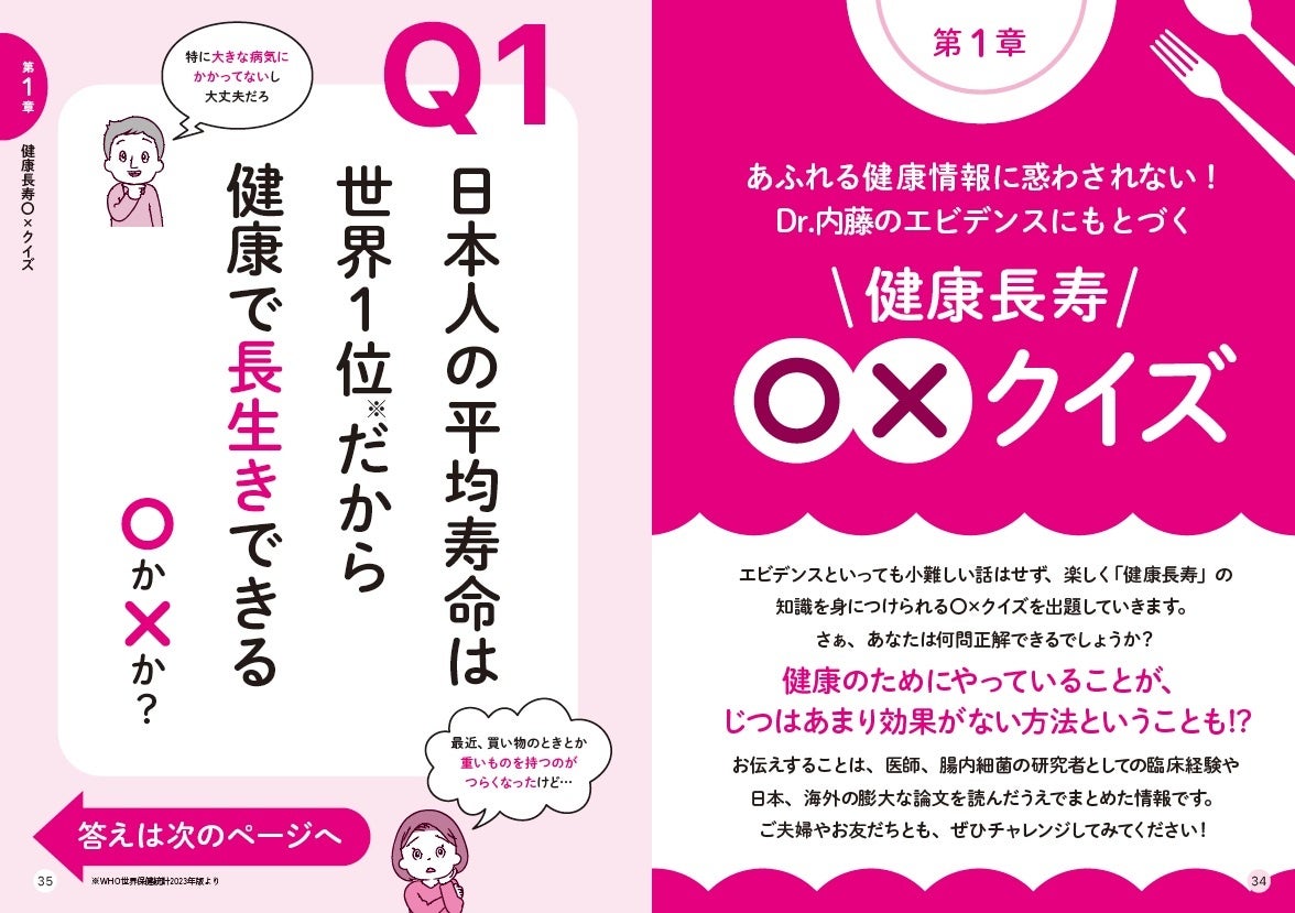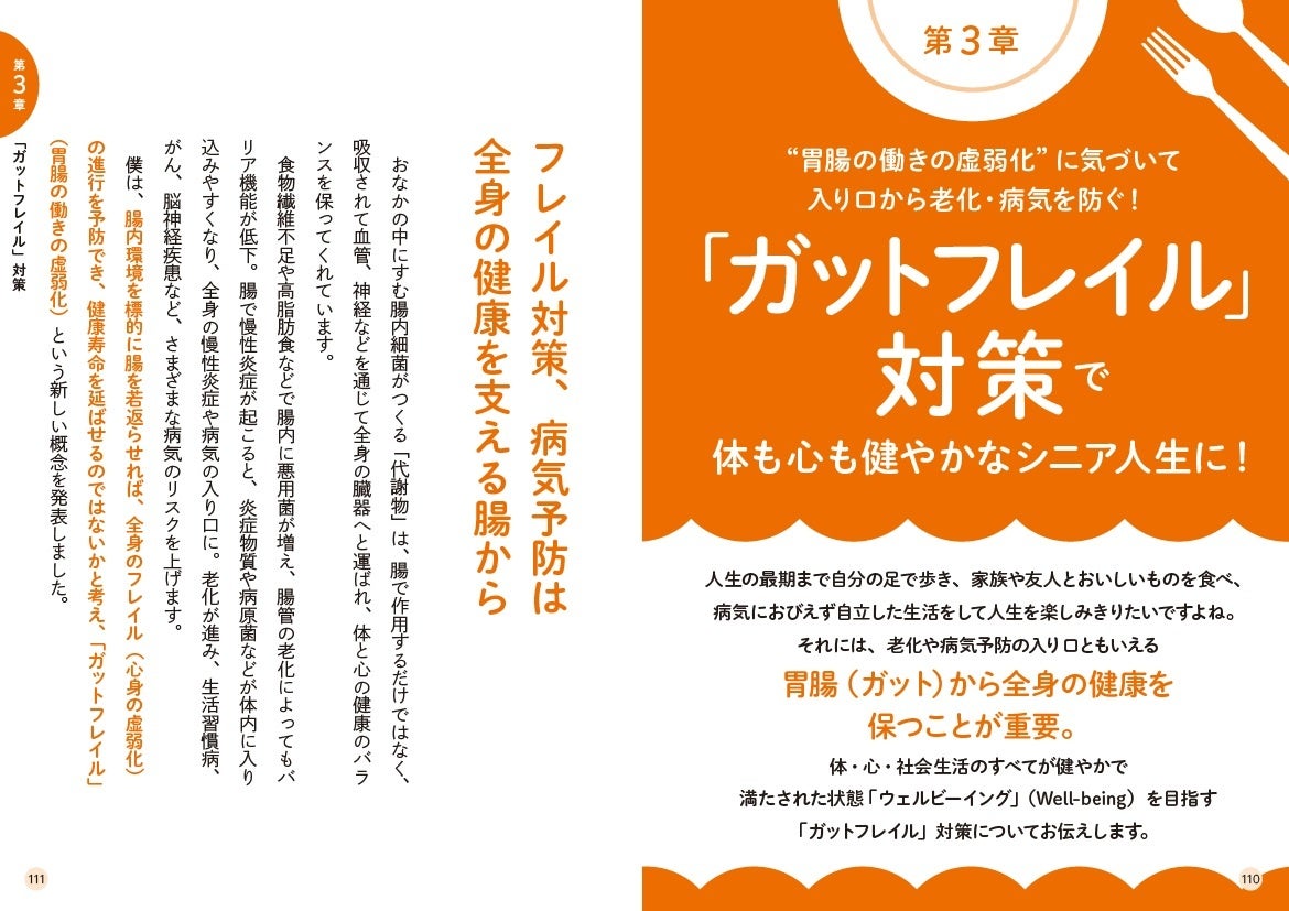 内藤先生の研究や日本国内・海外のさまざまな論文などからわかってきた長寿の秘訣や腸のこと。食生活を変えるにも「なぜ、これが良いのか/悪いのか」を理解しなければやる気になりませんよね。そこで、みなさんにぜひ知っておいてほしいことをクイズ形式で出題&解説。誰でも簡単に健康知識を身につけられます。さらに、最近注目の「ガットフレイル」についても内藤先生が詳しく解説。高齢者だけでなく、若い層にも増えているという胃腸の不調。これが全身のさまざまな疾患にもつながる可能性が高いなど、最新の健康情報も読むことができます。