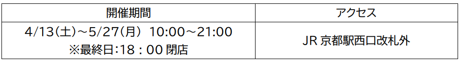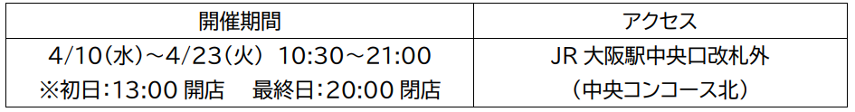 ・営業時間 : 10:30~21:00 ※初日は13:00開店、最終日は20:00閉店