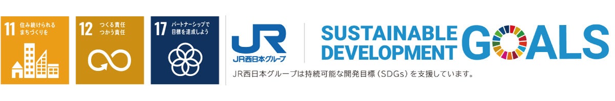 JR西日本ホテルズは、持続可能な開発目標(SDGs)を持ち、地域と共に、お客様一人ひとりの豊かな人生を広げます。今回ご案内の取り組みは、SDGs目標の11番、12番、17番に貢献するものと考えています。