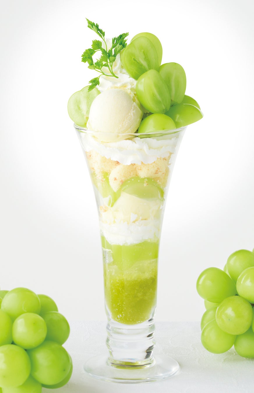 旬のフルーツを使った人気の“旬のフルーツ直行便”シリーズに「長野県産シャインマスカット」「北海道産赤肉メロン」を使用したパフェとフルーツサンドウィッチが登場。