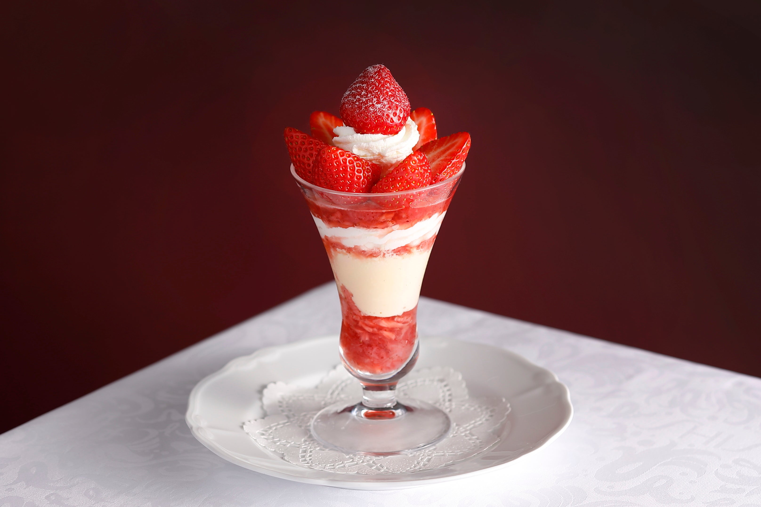 宝石のルビーを思わせる光沢のある赤色が特長の苺を贅沢に使用したパフェです。香り高く、甘味と酸味のバランスに優れた味わいをお楽しみください。