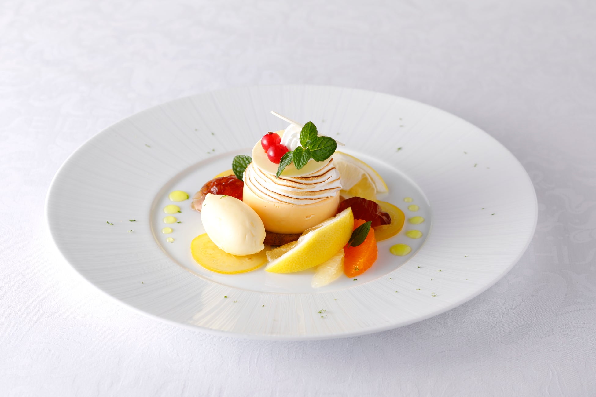 甘味を含んだ瀬戸内レモンと、その果汁を贅沢に使用し、タルトシトロンに仕立てました。今しか味わえない国産のグレープフルーツと、華やかな香りが広がる「銀座のはちみつ」のアイスクリームとのマリアージュをご堪能ください。