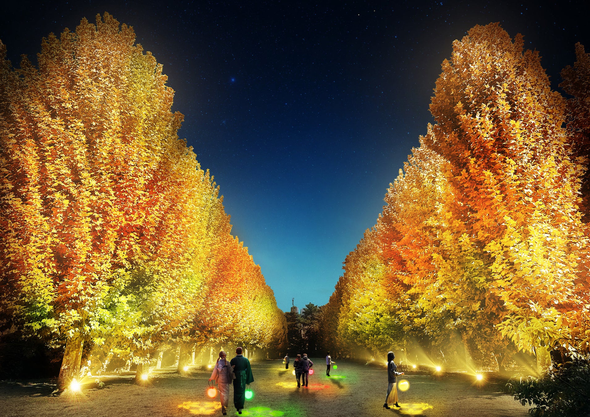 ネイキッドの光のアートで楽しむ、数少ない都心の紅葉スポット「新宿御苑」の秋夜