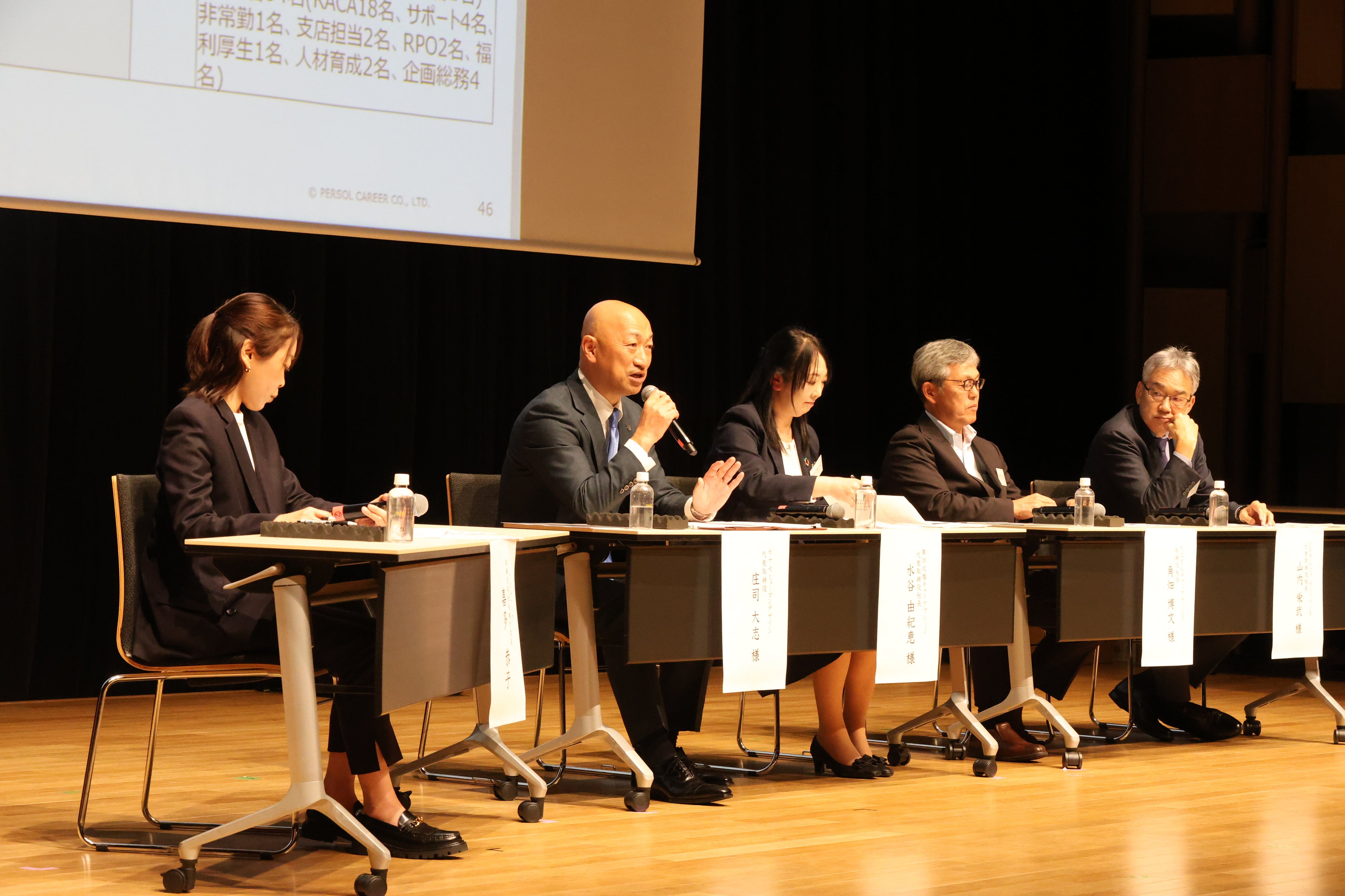 昨年度に続き、今回も「経営者対談」を行いました。経営陣が登壇し、「金融機関が人材事業に取り組む意義・価値」「描いている未来像とそこにむけての展望」について議論しました。
