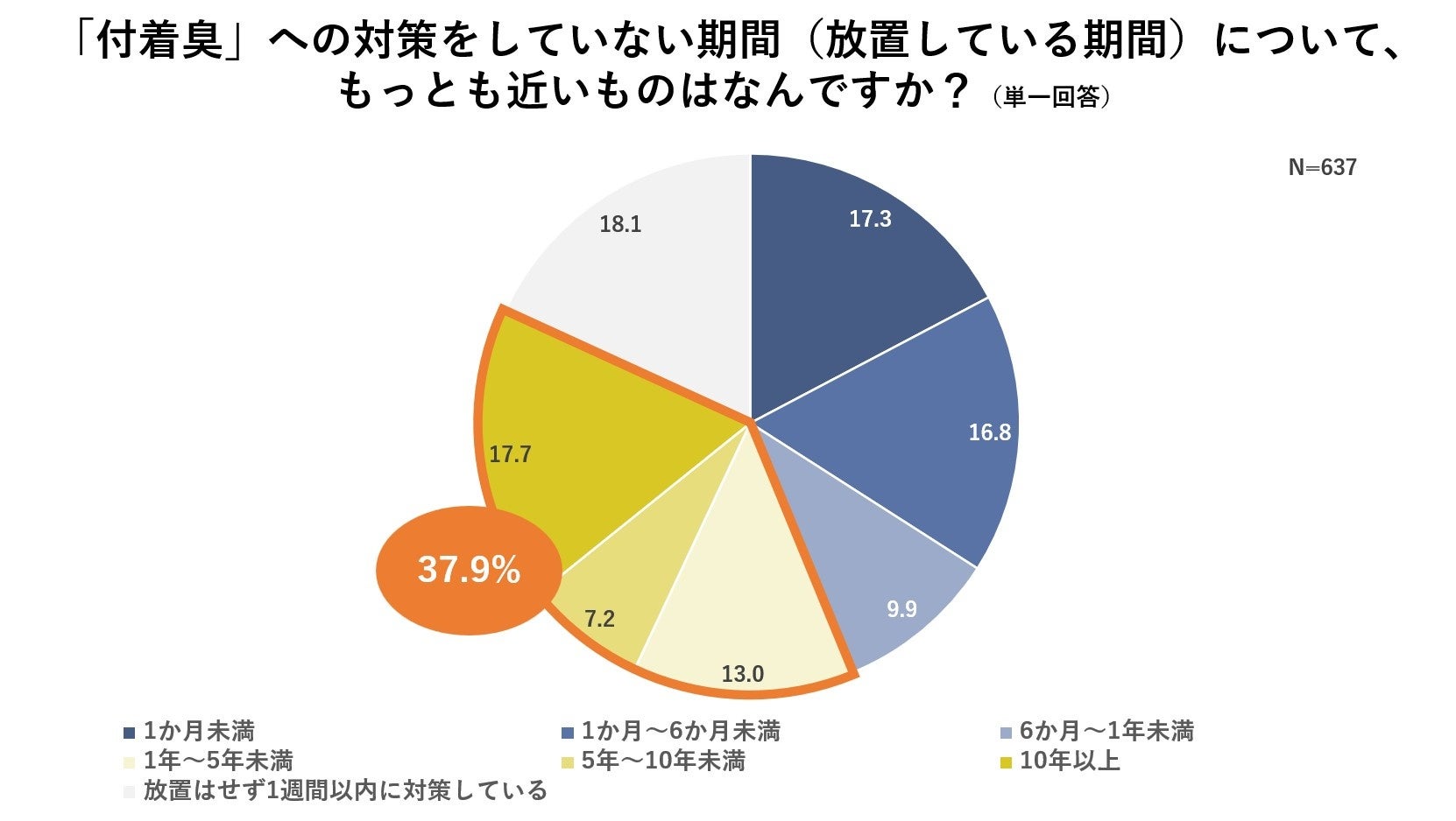 《「付着臭」を10年以上放置している人が2割近くいることが判明。1年以上放置している人は約4割に及ぶ。》