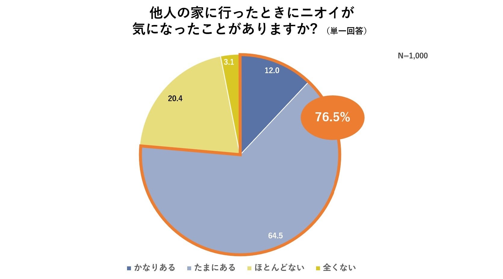 今回の調査の結果から、約8割の人が自宅のニオイや他人の家のニオイが気になったことがあることがわかりました。