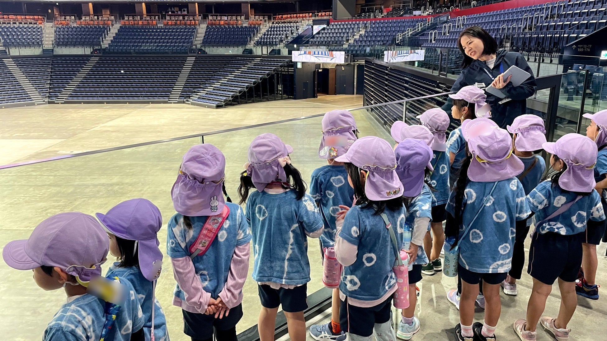 「おおきなわ」の活動の一環として「沖縄サントリーアリーナ見学・交流会」を実施し、「よなは保育園」と「美ら里保育園」の園児と職員の皆さんが沖縄サントリーアリーナを訪れました。