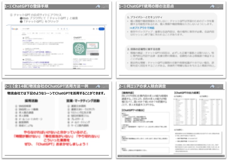 本資料では、ChatGPTの初期設定の方法から、運賃交渉資料や求人票作成の実例など、物流企業の作成生産性UP&業績UPを実現させるAI活用術を、徹底解説します。
