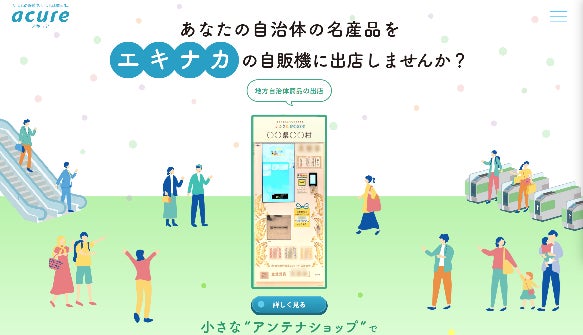 エキナカ自販機への出店をお考えの自治体のみなさまに向けて、『ふるさとアキュア』自販機の募集サイトを公開しております。