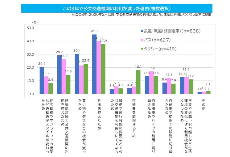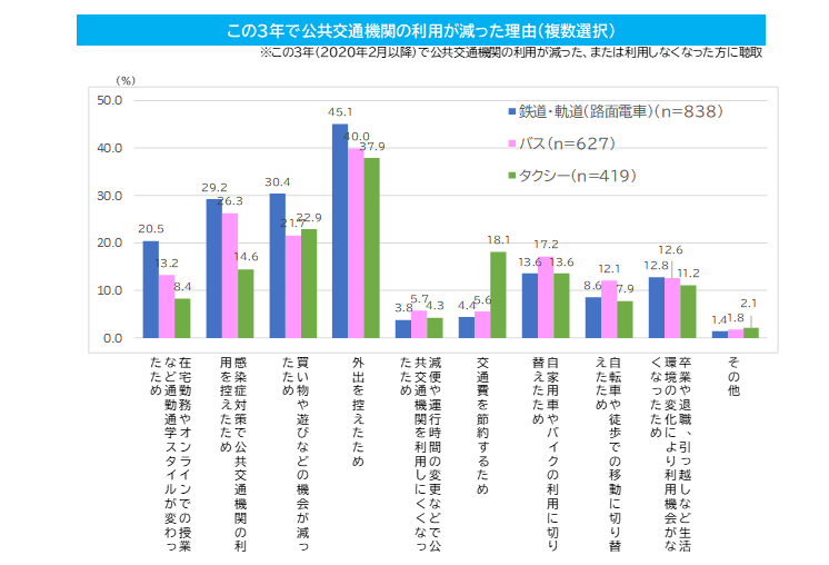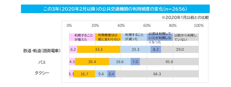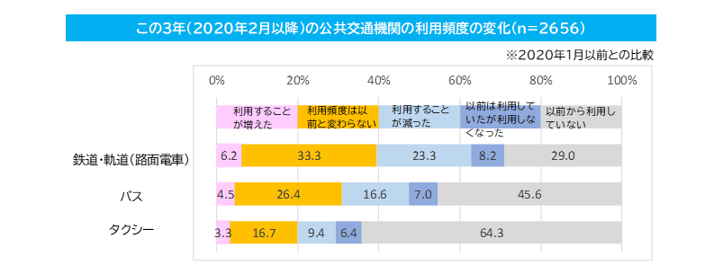 新型コロナウイルス感染症の流行前と比べると、この3年の公共交通機関の利用は減少傾向