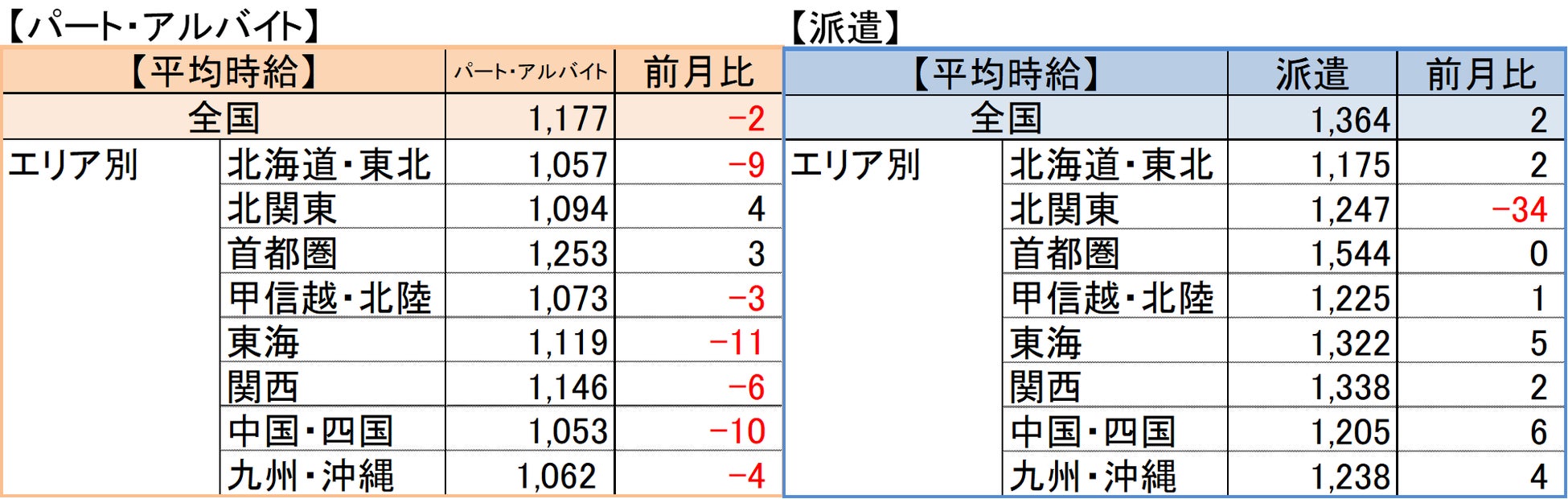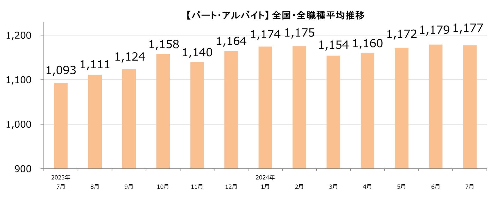 【パート・アルバイト】全国・全職種平均時給は1,177円。前月比-2円。前年同月比+84円。