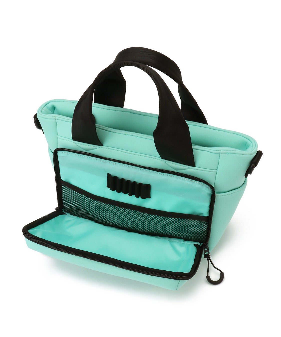 180°オープンファスナーの外ポケットは、中がメッシュの仕切りとティー差し付き。外側両脇には、スマホの出し入れがしやすいポケット、後ろ側にはスコアカードが入る大き目のポケットを完備。内ポケットは細かいものの収納に嬉しい細かい2つの仕切りと大きなマジックテープ付ポケットと、収納力は抜群です。