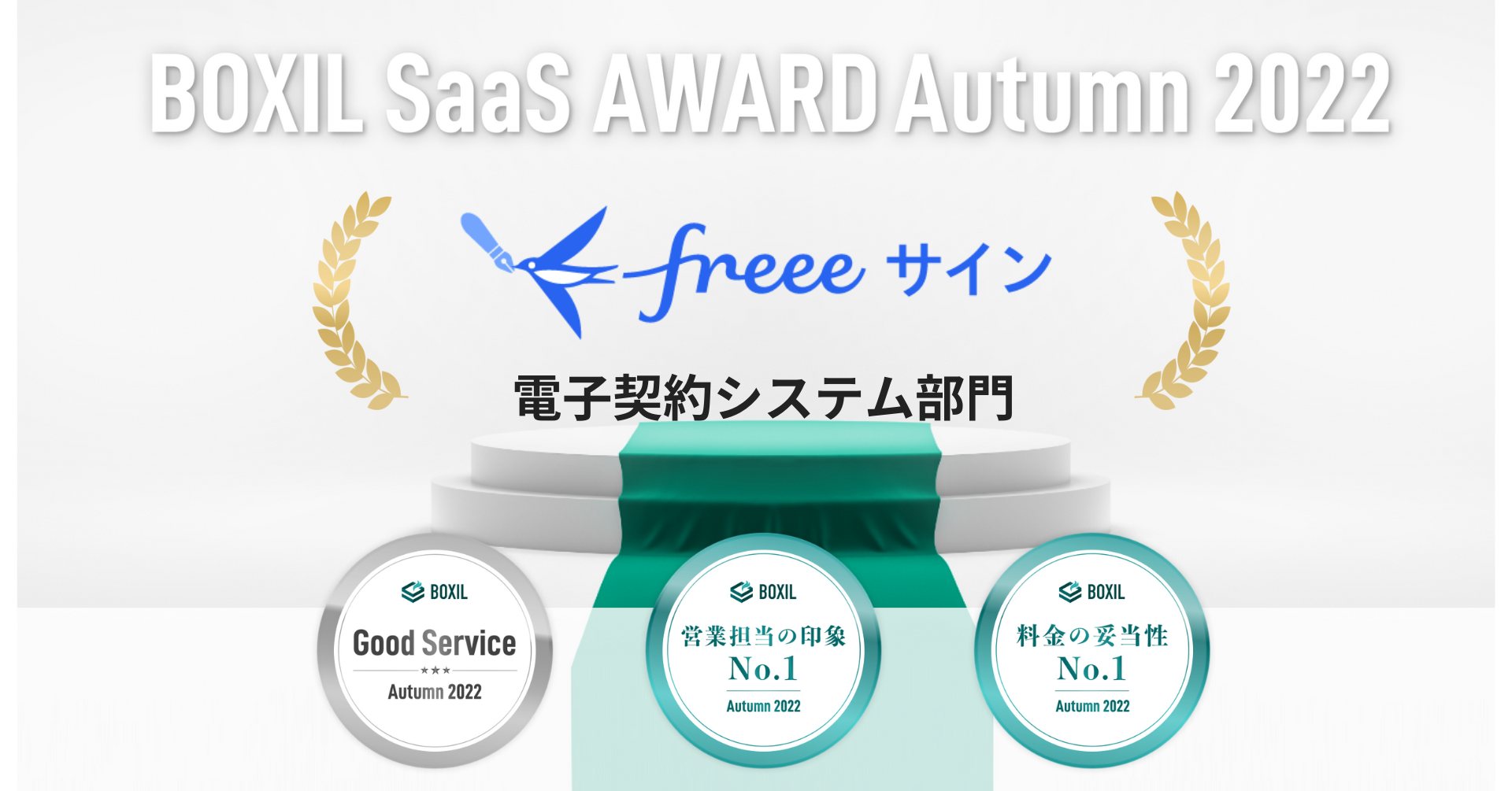 ・電子契約サービス「freeeサイン」が「BOXIL SaaS AWARD Autumn 2022」において電子契約システム部門 「Good Service」・「営業担当の印象No.1」・「料金の妥当性No.1」の3つを受賞しました