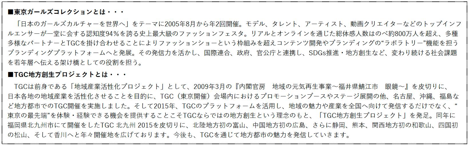 【 SDGs推進 TGC しずおか 2026 by TOKYO GIRLS COLLECTION 開催概要 】
