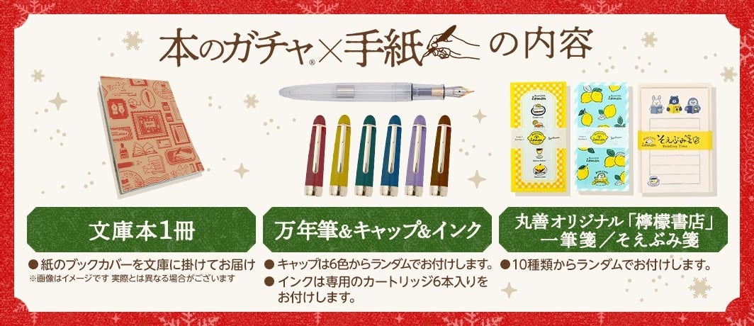 ●前回好評の「本のガチャ®×手紙 初めての万年筆セット」がパッケージを変えて再登場!●クリスマスシーズン、プレゼントや自分へのご褒美に!