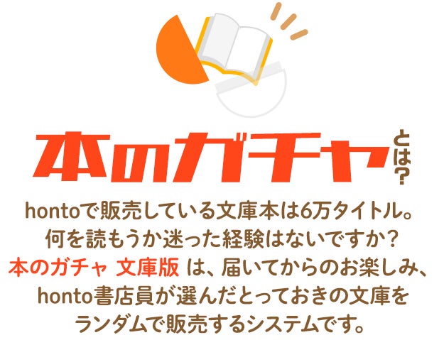 honto本の通販ストアで販売している文庫本約6万タイトルの中から、書店員が選んだとっておきの文庫をランダムでお届けする企画商品。
