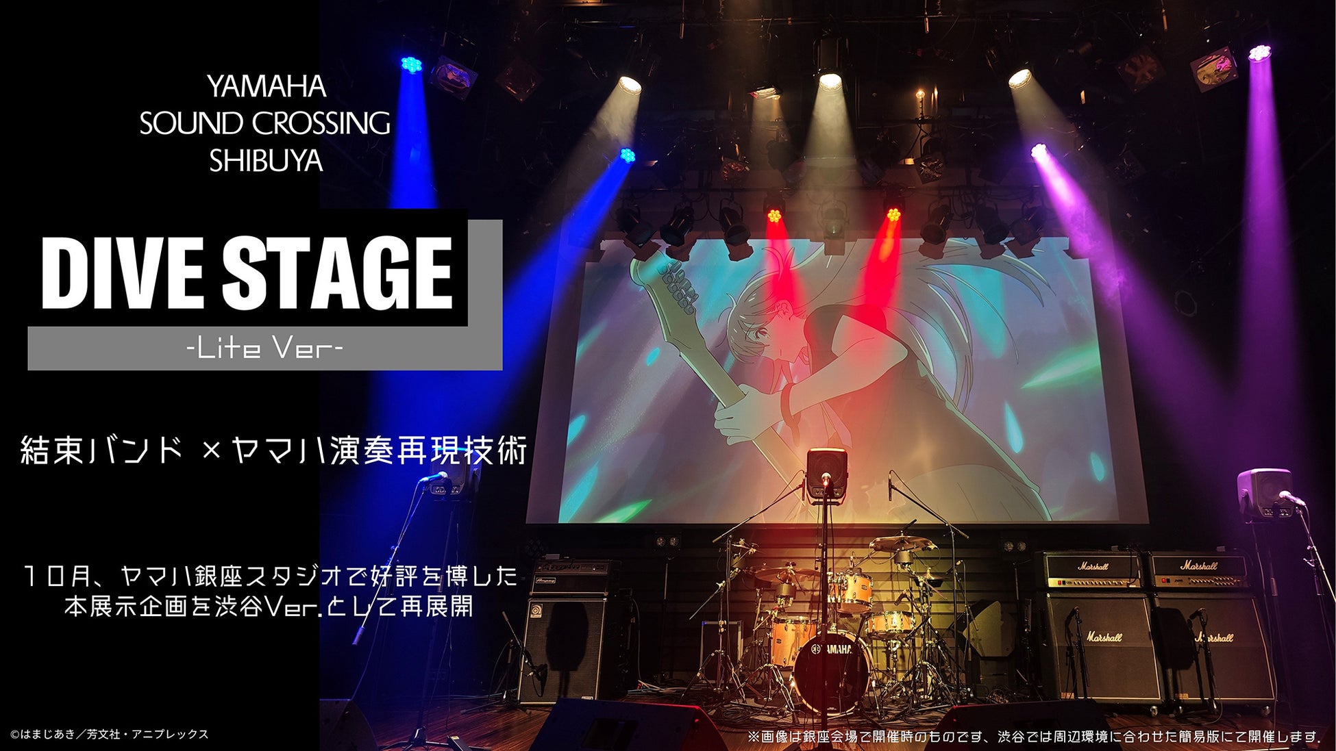 ヤマハ株式会社(以下、当社)は、ブランド発信拠点「Yamaha Sound Crossing Shibuya(ヤマハサウンドクロッシング渋谷、以下、YSC渋谷)」にて、2025年2月8日(土)から3月31日(月)まで、人気アニメ「ぼっち・ざ・ろっく!」とのコラボレーションイベント『アニメ「ぼっち・ざ・ろっく!」×「Yamaha Sound Crossing Shibuya」SHIBUYA ROCKOUT!』を開催します。作中バンド「結束バンド」の演奏を、当社の自動演奏技術を用いて再現する「DIVE STAGE‐Lite ver.-」やコラボカフェメニューの提供、バンド体験、マルチモーダルライブ視聴などさまざまな企画を開催します。