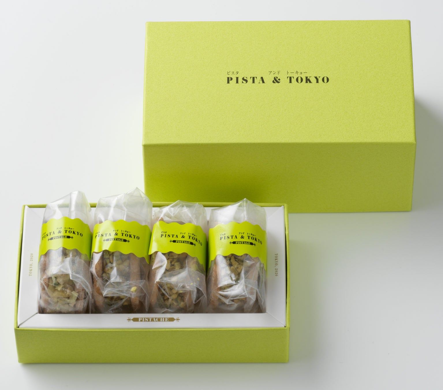 ピスタチオの魅力を存分にお楽しみいただける『ピスタージュ』は、高級感漂うパッケージも魅力の一つです。シンプルかつ洗練された箱には、鮮やかなピスタチオカラーをあしらい、一つ一つ個包装でご用意いたしました。