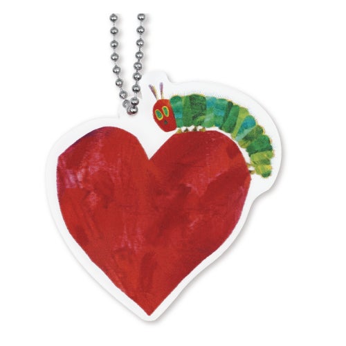 ハート型のアクリルキーホルダーに乗るはらぺこあおむしがとてもキュート!