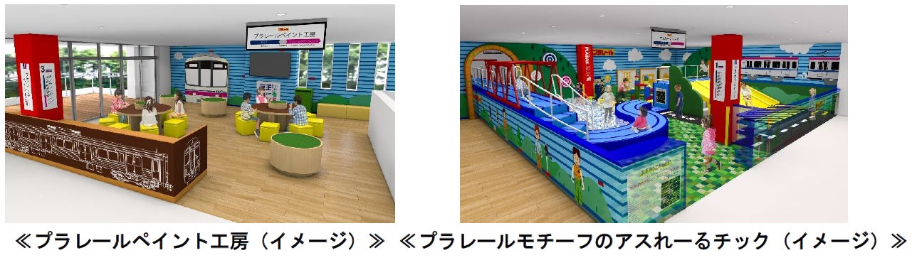 また、「京王れーるランド(以下「れーるランド」)」では、京王線8000系車両をベースとした「京王ペイントトレイン」を自由にデザインして、世界に一つだけのオリジナル車両を作ることができる「プラレールペイント工房」を新設し、本館2階のプラレールコンテンツを拡充する等、2024年3月にフロアの一部をリニューアルします。