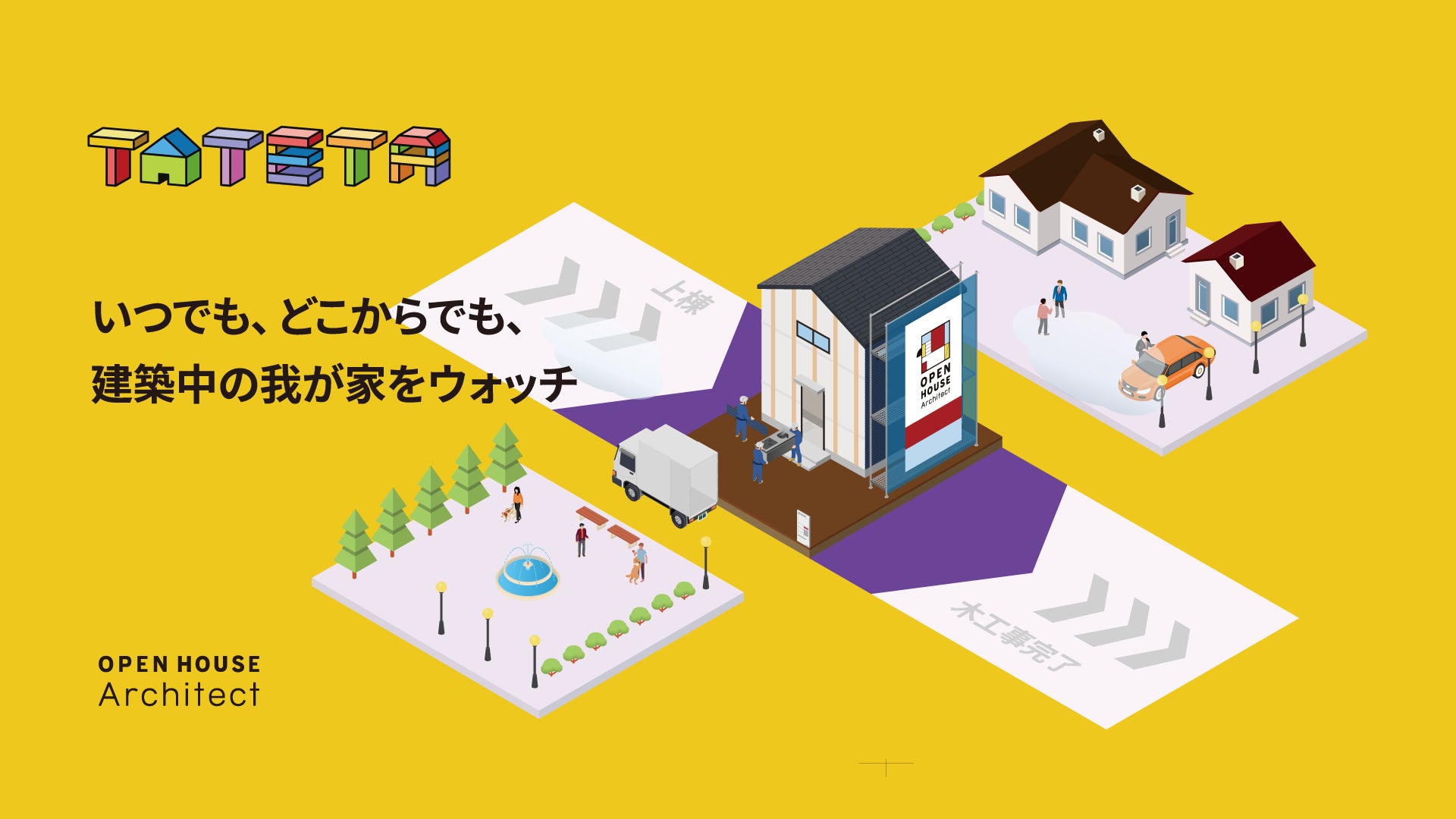 株式会社オープンハウスグループ(本社 東京都千代田区、代表取締役社長 福岡 良介、以下「当社」)のグループ会社である株式会社オープンハウス・アーキテクト(本社 東京都中野区、代表取締役 長井 光夫、以下「オープンハウス・アーキテクト」)は、注文住宅の建築工程をアニメーションで可視化し、施主様へ届ける革新的な新サービス「TATETA(タテタ)」をリリースいたしました 。