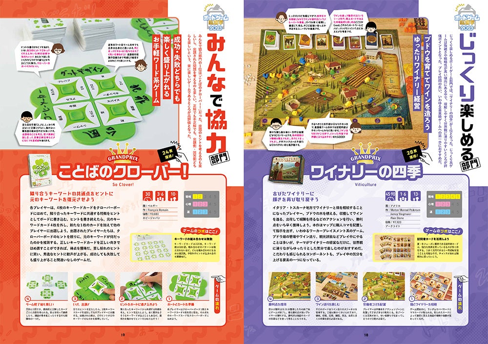 その他の部門でグランプリをとったゲームやその他多くのゲームの遊び方はもちろん、プレイ時間・人数・対象年齢・ゲーム性などが、ひと目でわかるカタログを掲載しています。